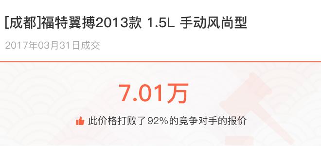 下面一起來看下開了不同公里數的福特翼搏在二手車拍賣平臺上賣了多少錢: