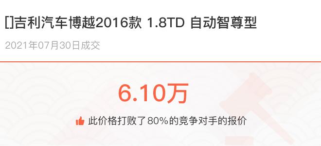 下面一起來看下開了不同公里數(shù)的吉利汽車博越在二手車拍賣平臺上賣了多少錢:
