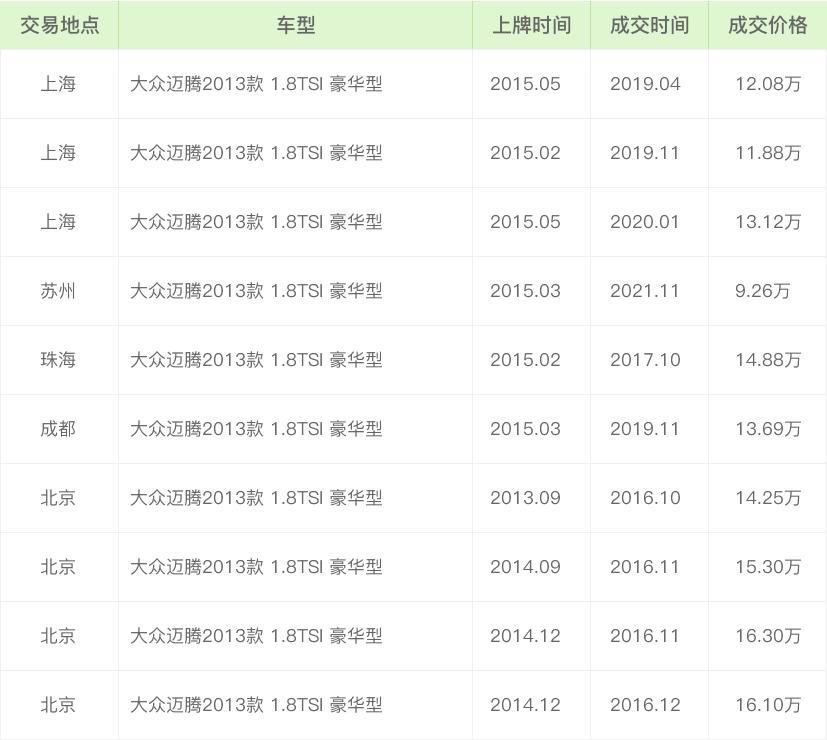 以上為這款車在各個地區二手車的成交價格,由此可見,影響二手車價格的因素很多,不能單從一兩個因素去看。
