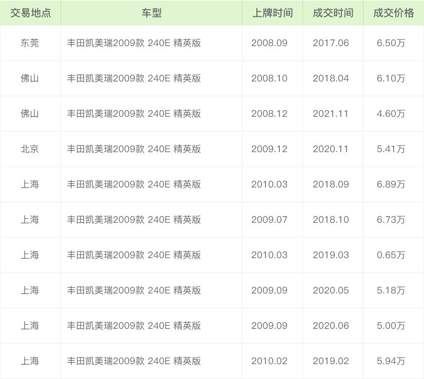 車型:豐田凱美瑞2009款 240E 精英版