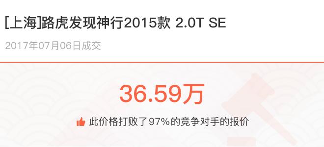 下面一起來看下開了不同公里數(shù)的路虎發(fā)現(xiàn)神行在二手車拍賣平臺(tái)上賣了多少錢: