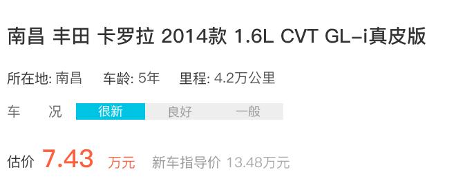 車型:豐田卡羅拉2014款 1.6L CVT GL-i真皮版