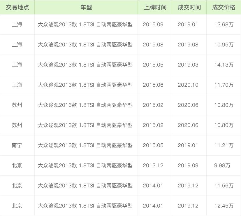 以上為這款車在各個地區二手車的成交價格,由此可見,影響二手車價格的因素很多,不能單從一兩個因素去看。