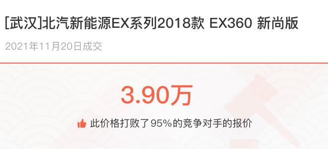 下面一起來看下開了不同公里數的北汽新能源EX系列在二手車拍賣平臺上賣了多少錢: