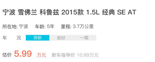 車型:雪佛蘭科魯茲2015款 1.5L 經典 SE AT