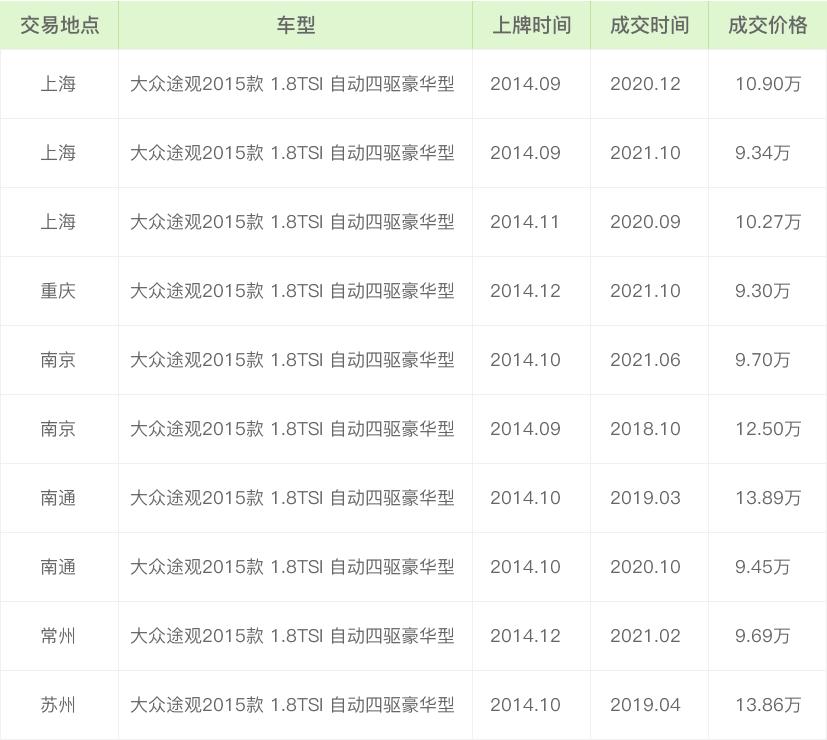 以上為這款車在各個地區二手車的成交價格,由此可見,影響二手車價格的因素很多,不能單從一兩個因素去看。