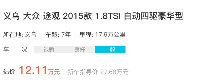 該款車2014年上牌啟用,行駛17.9萬公里,新車指導價27.68萬元,車況一般的情況下,成交價7.39萬。