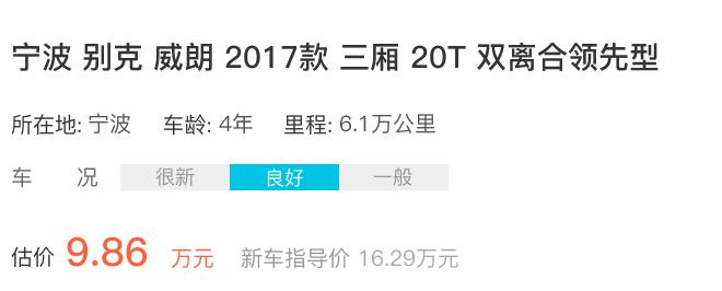 該款車2017年上牌啟用,行駛6.1萬公里,新車指導(dǎo)價16.29萬元,車況良好的情況下,成交價5.97萬。