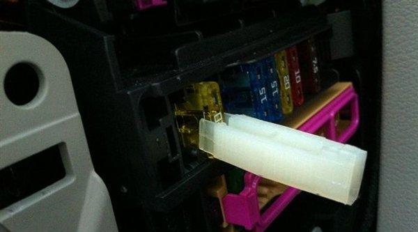 5、用夾子類工具將燒毀的保險絲取下,將新的保險絲重新接回。